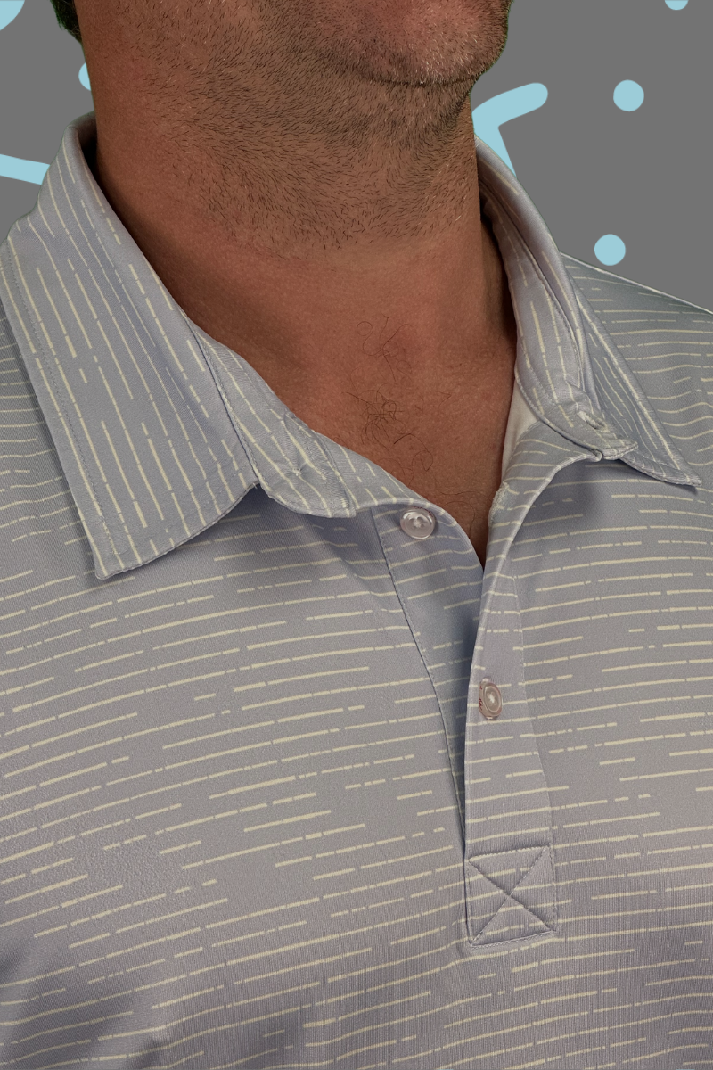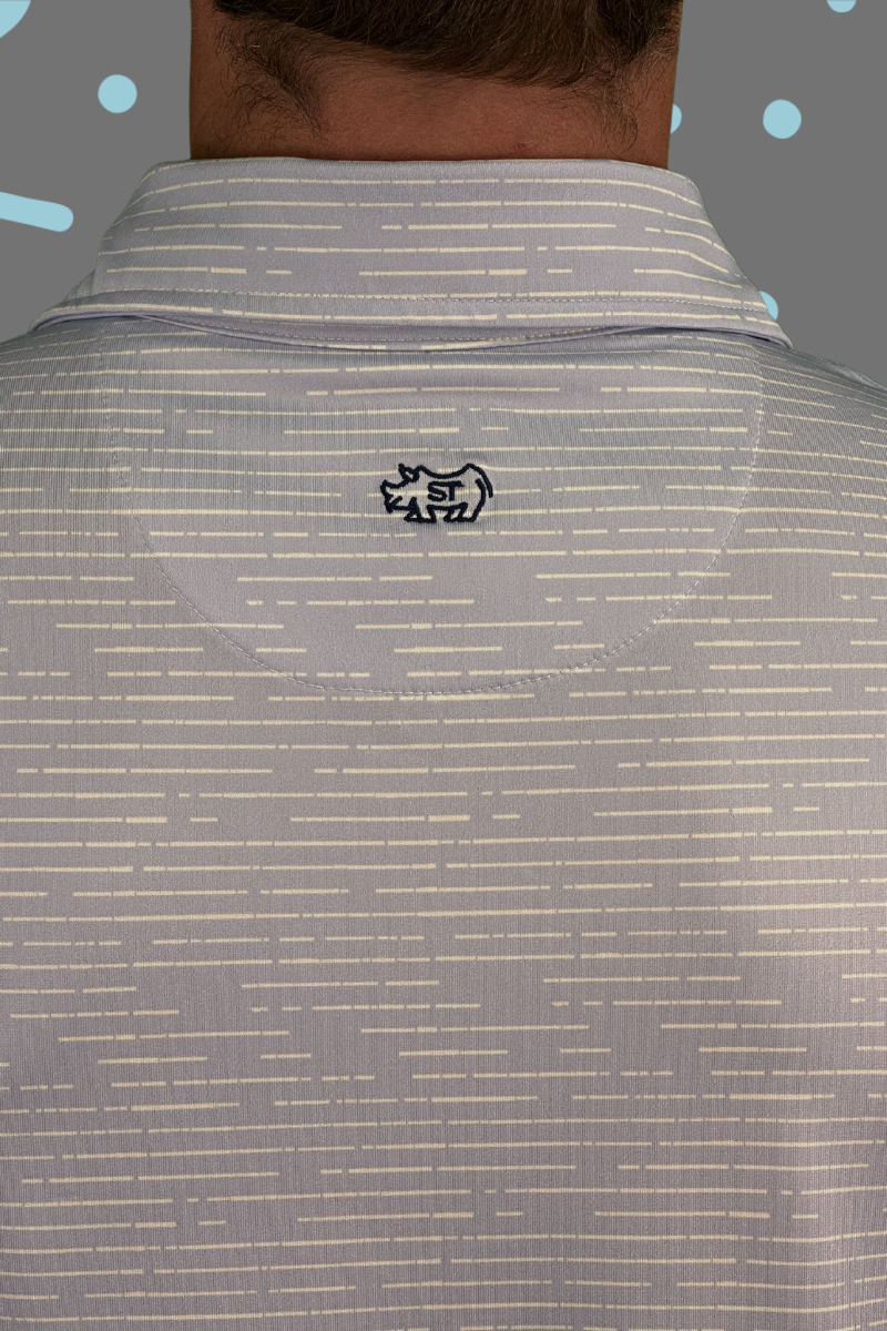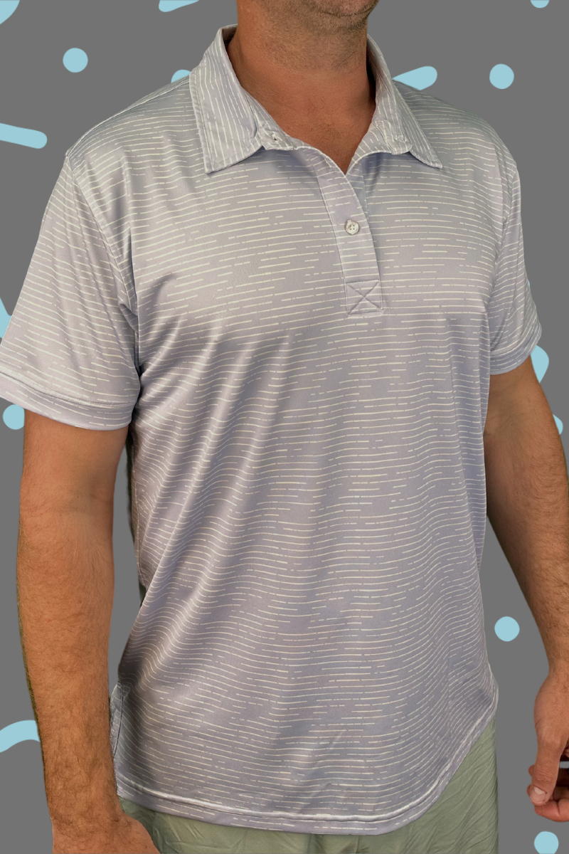 Score a hole-in-one in style in this sleek polo - no matter the place. Boasting a grey background with white dashed lines, you'll be turnin' heads with this fashionable fit. Crafted with moisture-wicking performance fabric, it'll keep you feelin' cool and collected - not to mention totally on point!